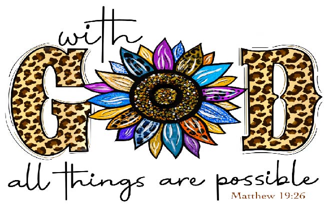 Short sleeve t-shirt. "WITH GOD ALL THINGS ARE POSSIBLE"